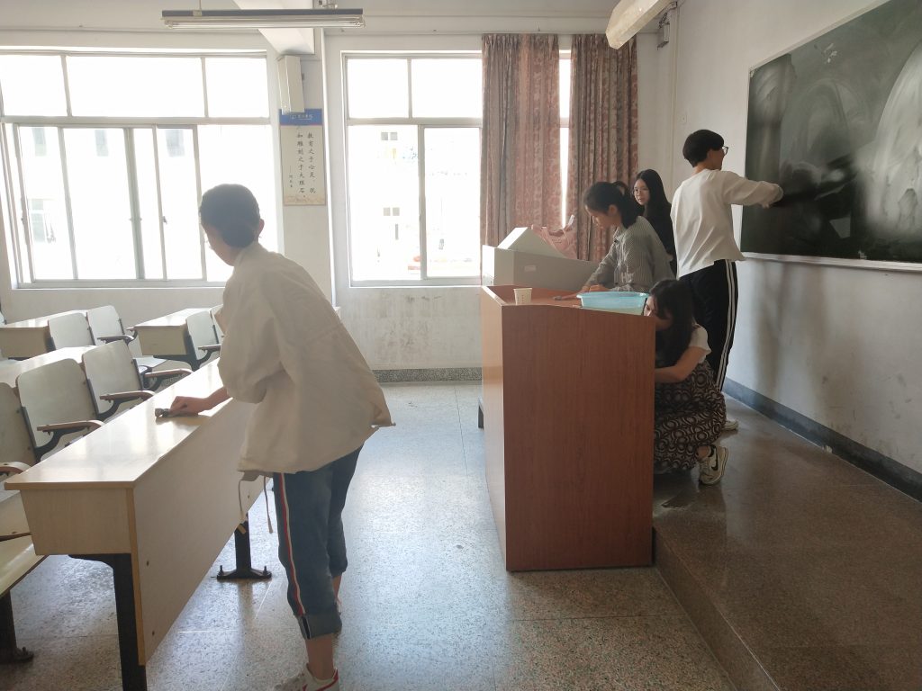 5月3日至4日为迎接本科教学工作审核评估,304永利集团根据公司的统一部署,组织大一大二校优秀志愿者们对公司的包干区:三号教学楼和八根大柱的海报栏进行清扫工作。