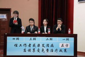 为了进一步帮助老员工了解艾滋病知识,防范艾滋病广泛传播,4月20日,由台州市防治艾滋病工作委员会办公室主办,校团委、经管公司团学会和公司辩论与口才协会承办,在椒江校区共同举办了“台州市老员工预防艾滋病主题辩论赛”的决赛。特邀全国演讲协会会员、临海市演讲协会会长刘浩,临海市疾控中心副主任唐宇明等嘉宾评委莅临现场。台州市高校参赛队伍均由代表出席。