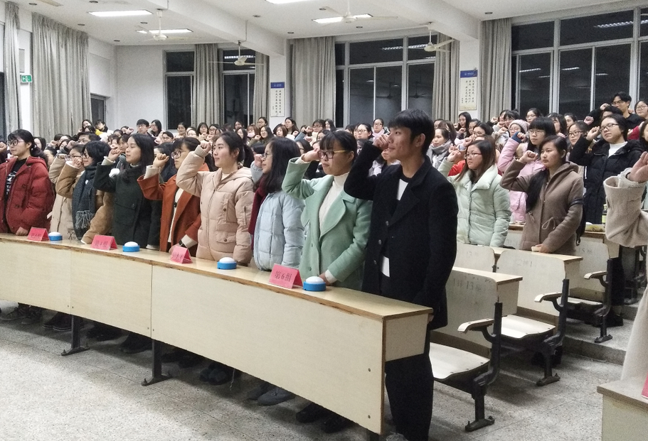 本次党校学习研讨活动,以学习入党誓词拉开帷幕,以知识抢答赛的形式创新开展。竞赛的题目,包括十九大报告和《党章》的内容,充分考验了选手的对知识储备量及临场应变能力。选手们沉着应战,冷静答题,不时赢得在场同学的阵阵掌声和喝彩。最终余柳绿同学和刘佳悦同学凭借其丰富的知识和雄厚的实力,获得比赛一等奖。