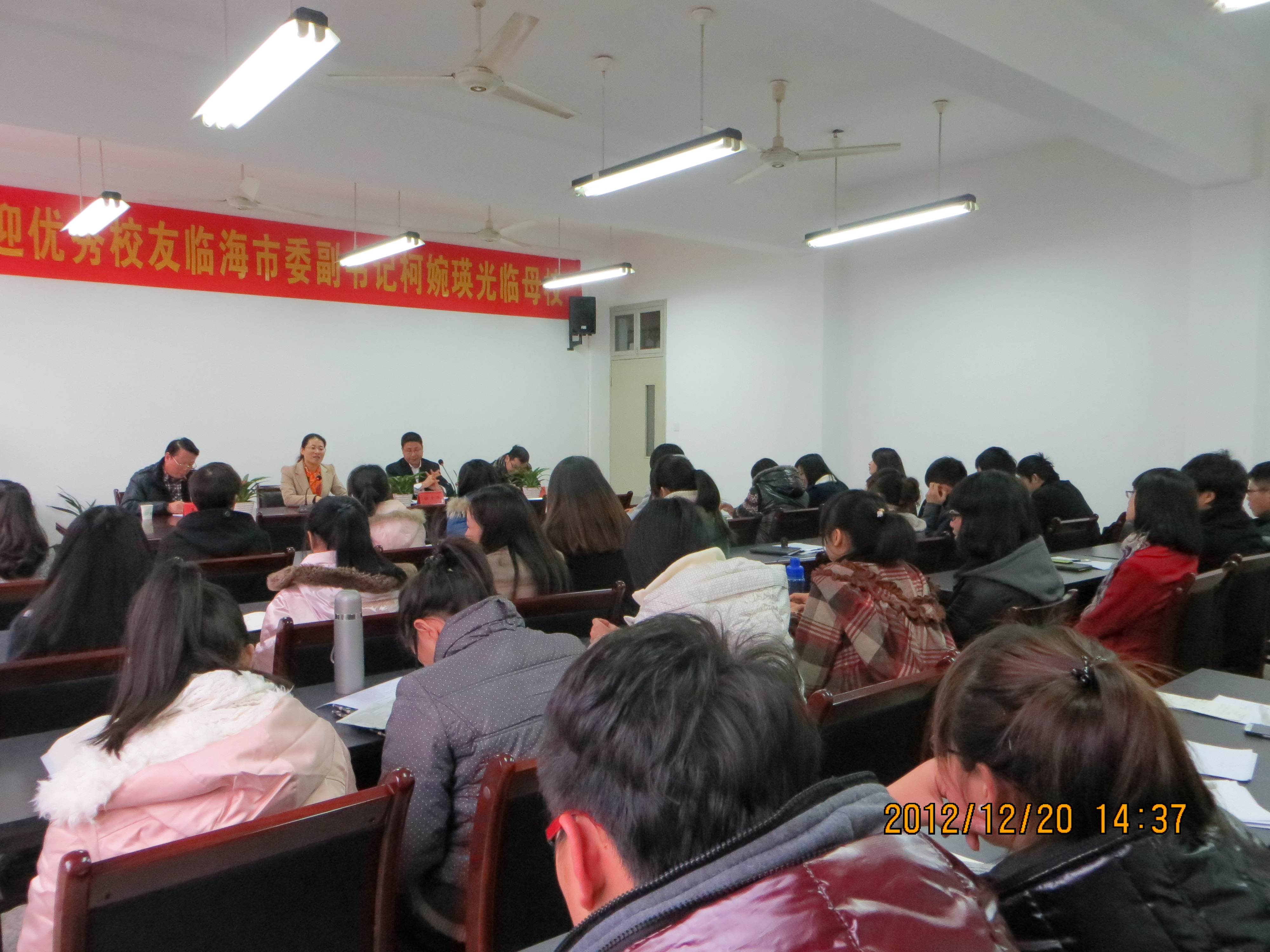 相约校园,对话成长。12月20日,思政部特邀优秀员工、临海市委副书记、政法委书记柯婉瑛来部座谈。思政部党总支书记杜才平主持座谈会,思政部团学会干部、班干部和部分员工代表参加座谈会。