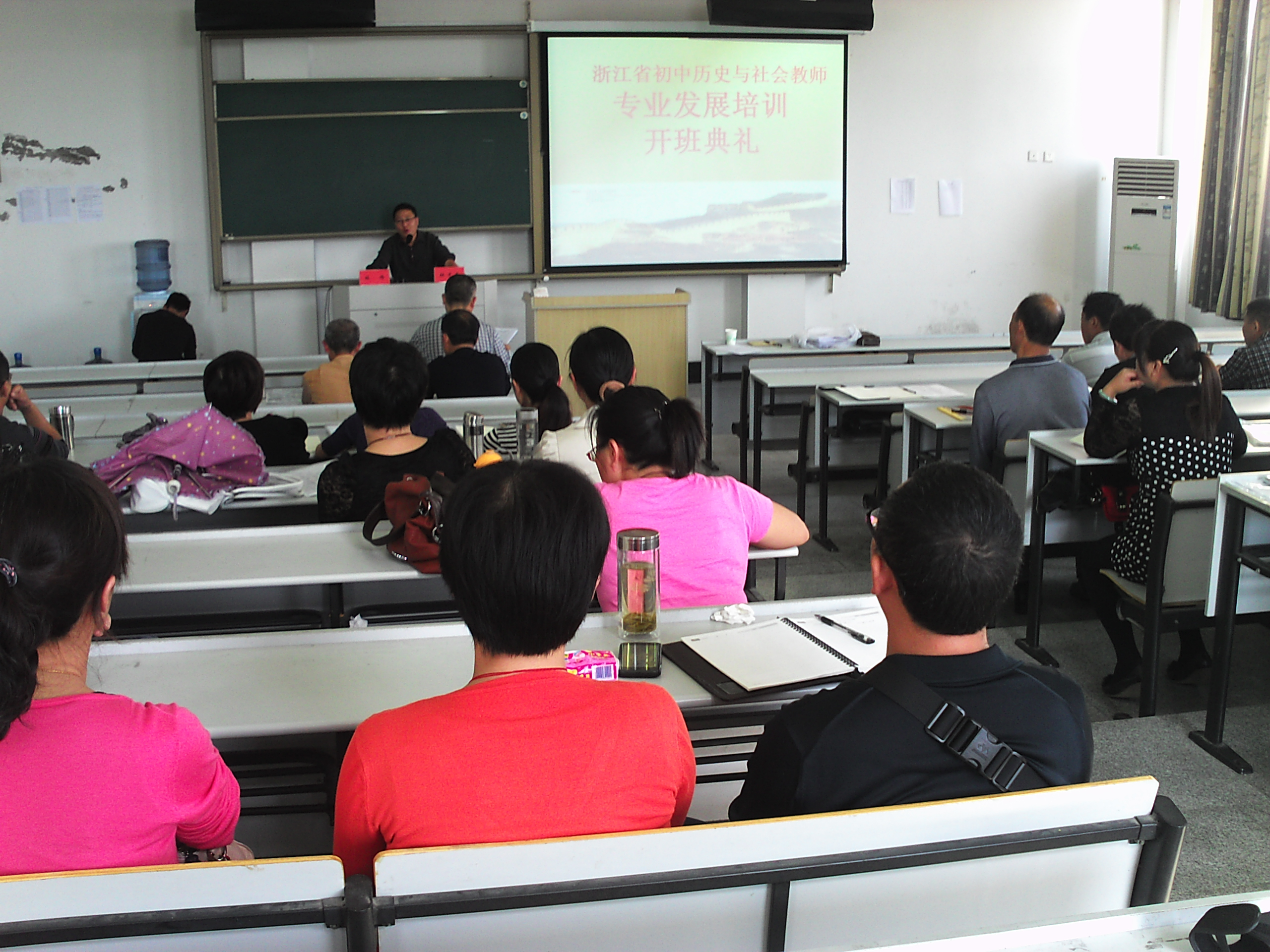 10月9日下午,浙江省初中历史与社会教师专业发展培训开班典礼在公司临海校区举行。思政部党总支书记杜才平致辞,副主任林伟主持,来自台州各县市区及温州、金华、衢州和丽水等地区的33名学员参加开班典礼。