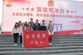 在临海市崇和门广场举行的国家宪法日活动中,法学社的员工们进行了宪法宣誓领誓,穿上相应的服装,他们庄重的宣誓:“我宣誓:忠于中华人民共和国宪法,维护宪法权威,履行法定职责,忠于祖国、忠于人民,恪尽职守、廉洁奉公,接受人民监督,为建设富强民主文明和谐美丽的社会主义现代化强国努力奋斗!”这是法学社同学们作为新时代青年员工对于宪法的敬畏之情,更提升了同学们尊重宪法、遵守宪法、普及宪法的责任感。