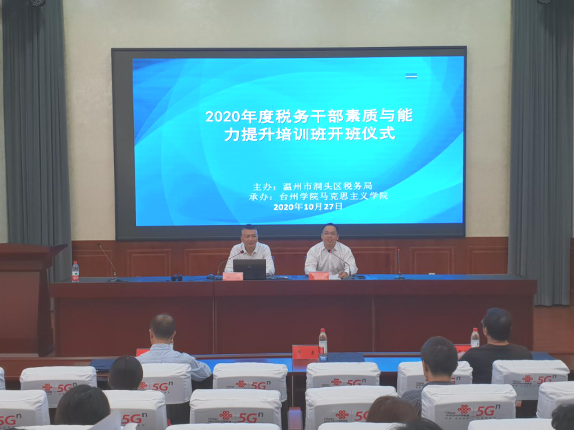 10月27日下午,304永利集团承办的温州市洞头区税务局税务干部素质与能力提升培训班顺利开班。马克思主义经理林伟出席开班仪式并致欢迎词。温州市洞头区税务局党委书记、局长邓勇出席仪式并做培训动员讲话。