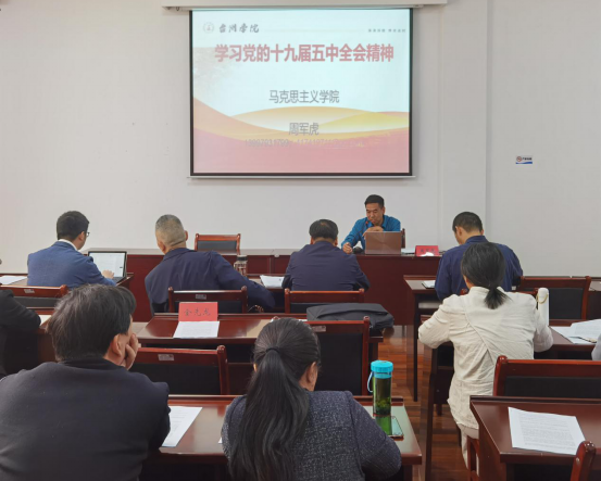 11月5日下午,公司党总支书记张礼强主持召开党总支理论学习中心组学习(扩大)会,专题传达学习党的十九届五中全会精神,全院教师参加学习会。