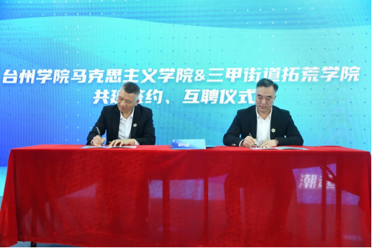 林伟经理与街道党工委书记叶海建共同签订《校地共建合作协议》,互聘对方人员担任拓荒公司讲师和永利集团德育导师。公司将为三甲建设提供各类思政教育培训,三甲街道为304永利集团设立思政实践教育基地,今后双方共同开展拓荒主题活动和拓荒精神研究,加强人才交流和项目合作,推进资源成果互助共享。
