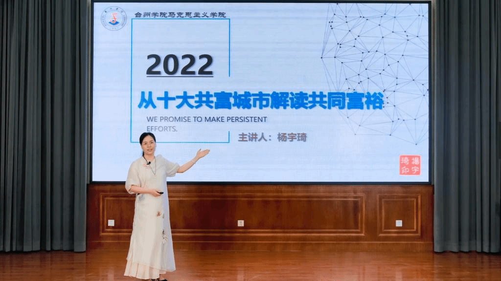 马公司杨宇琦老师以《从“十大共富城市”解读共同富裕》参赛,录制的视频课在全省各高校提交的40个作品中脱颖而出,成功入围15名决赛选手。决赛采用现场授课的方式,每位选手限时10分钟。杨老师沉稳老练的教风教态、精心设计的教学内容得到评委的好评,喜获一等奖,展示了公司思政课教师的风采。