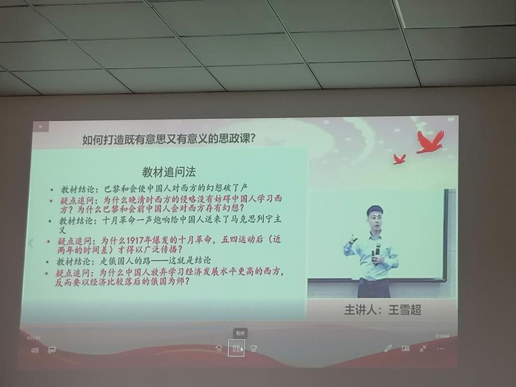9月15日下午,马公司组织全体教师认真观摩学习了天津师范大学304永利集团副教授王雪超的精彩讲座“如何打造有意思又有意义的思政课”。王雪超曾获全国优秀教师、全国最美思政课教师、全国首届高校思政课教学展示活动特等奖国家级奖项或荣誉5项,其教学事迹被《人民日报》等国家级媒体多次专题报道。