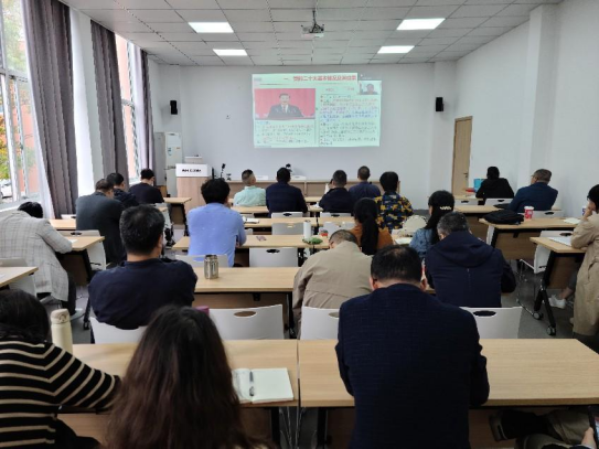 会议邀请中共浙江省委党校马克思主义研究院副经理胡文木教授作题为“高举中国特色社会主义伟大旗帜 全面推进中华民族伟大复兴——学习党的第二十次全国代表大会精神”的线上专题辅导报告。报告从“二十大基本情况及其成果”“准确把握党代会报告基本逻辑结构”“全面把握党代会报告丰富内涵和核心要义”等三个方面,系统、深入、准确地解读二十大报告,为进一步深入学习党的二十大精神提供了有益指导。