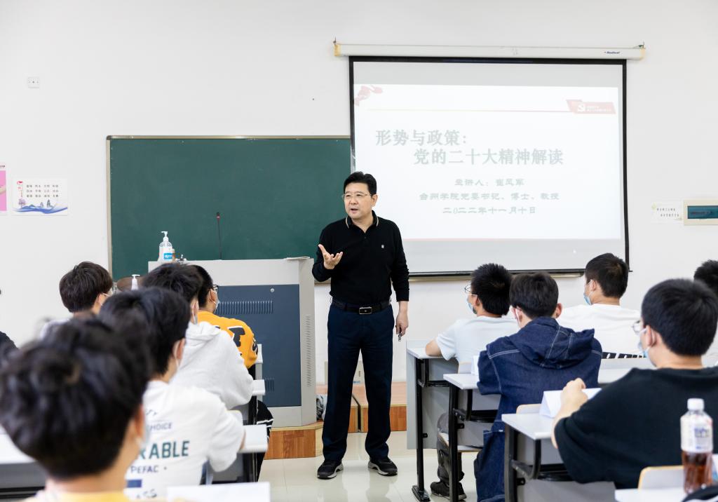 课堂上,崔凤军从党的二十大重大深远的历史意义、党的二十大主题中蕴含的丰富内涵、全面深刻把握习近平新时代中国特色社会主义思想的世界观和方法论、新时代青年使命担当等八个方面作了系统宣讲和深入阐释。他希望,台院青年学子要认真贯彻党的二十大精神,青年强,则国家强,新征程是充满光荣和梦想的远征,青年一代生逢其时,要为全面建设社会主义现代化国家、全面推进中华民族伟大复兴而不懈努力,不负青春韶华。