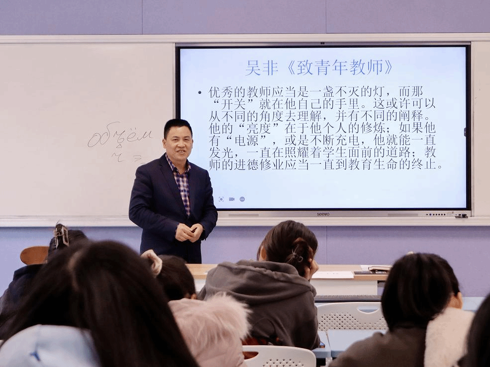 项董事长还建议同学们一定要多写文章,要多参加辩论赛、演讲等活动,从点点滴滴提升自己的表达能力。呼吁同学们要把握好大好年华,多学多看多问,利用好网络,观看名师讲座,提升自身修养习性,陶冶情操。身为师范生,也需要打好基础,在公司里练好三笔字,要主动拿起笔写好字。