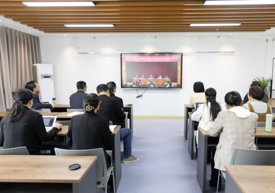 4月27日上午,全国高校思政课2023年版教材使用培训会开幕。教育部党组成员、副部长王嘉毅、中宣部理论局副局长陈启清出席开幕式并讲话。公司在椒江校区和临海校区分设直播分会场。公司党委委员、宣传部部长金松出席开班式,马公司领导班子和专任教师在分会场认真聆听了开班式讲话和直播学习。