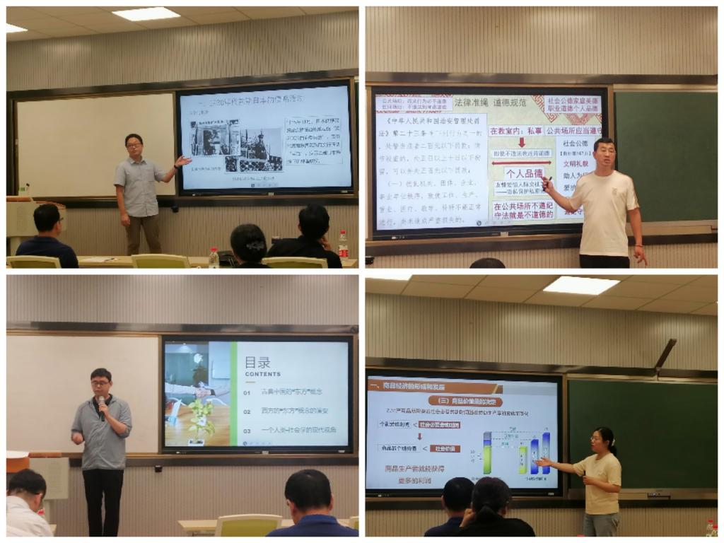 李升军、王磊、向昊秋、苏畅等4位青年教师走上讲台,分别以《学习法治思想, 提升法治素养》《商品经济的形成和发展》《日本谋划全面侵华与中国人民的反抗》《“东方”概念的演变》为主题,呈现了精彩一课。他们在教学内容中有机融入习近平新时代中国特色社会主义思想以及党史学习教育,贯通理论与实践、联通历史与现实,教学设计新颖,育人理念贴合新时代老员工的特点,善于将传统教学手段与现代新技术结合起来。整个展示过程充分检验了教师的理论功底和教学基本功等综合素质,体现出新时代思政课教师乐为、敢为、有为的新形象。