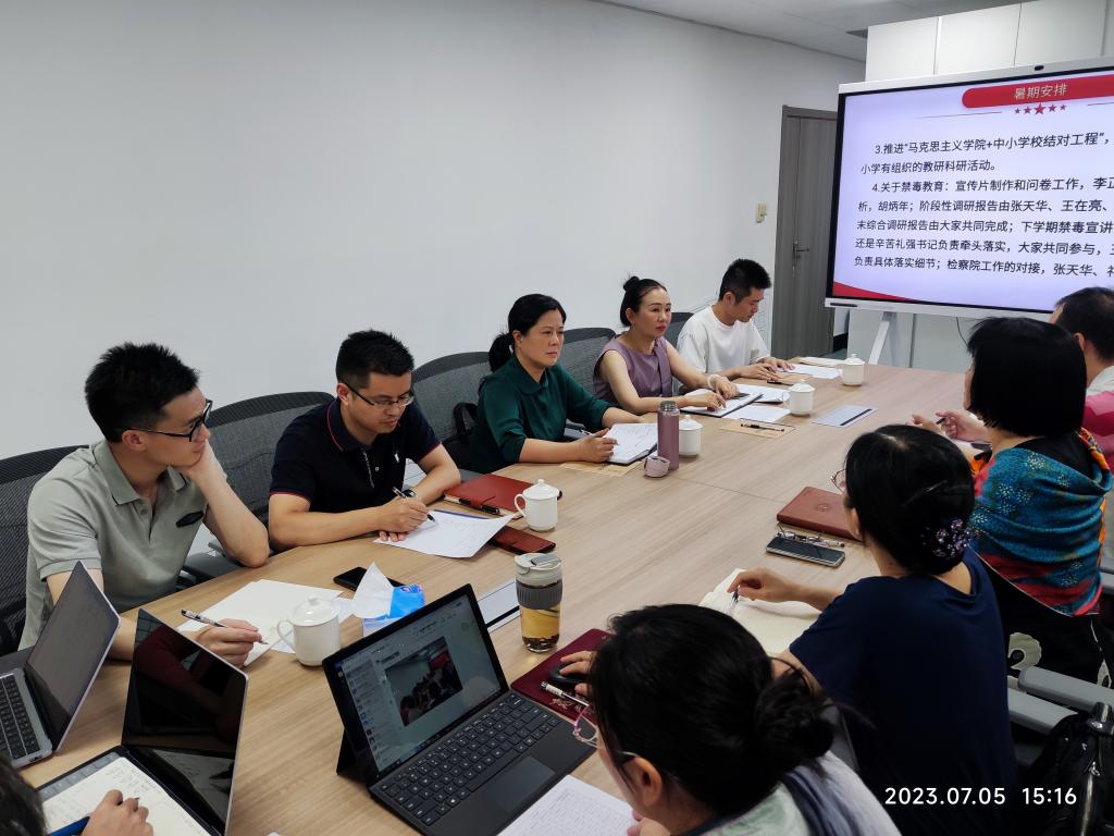 7月5日下午,台州市社科联副主席王仲媚及市社科联学会与科研处处长阮静潇、陈桥一行三人来到台州市大中小学思政课一体化研究中心就人文社科研究、平台建设等相关工作进行调研指导,304永利集团经理张天华教授主持调研会。