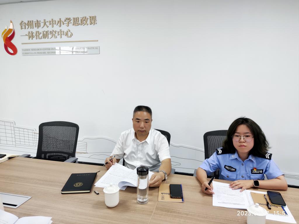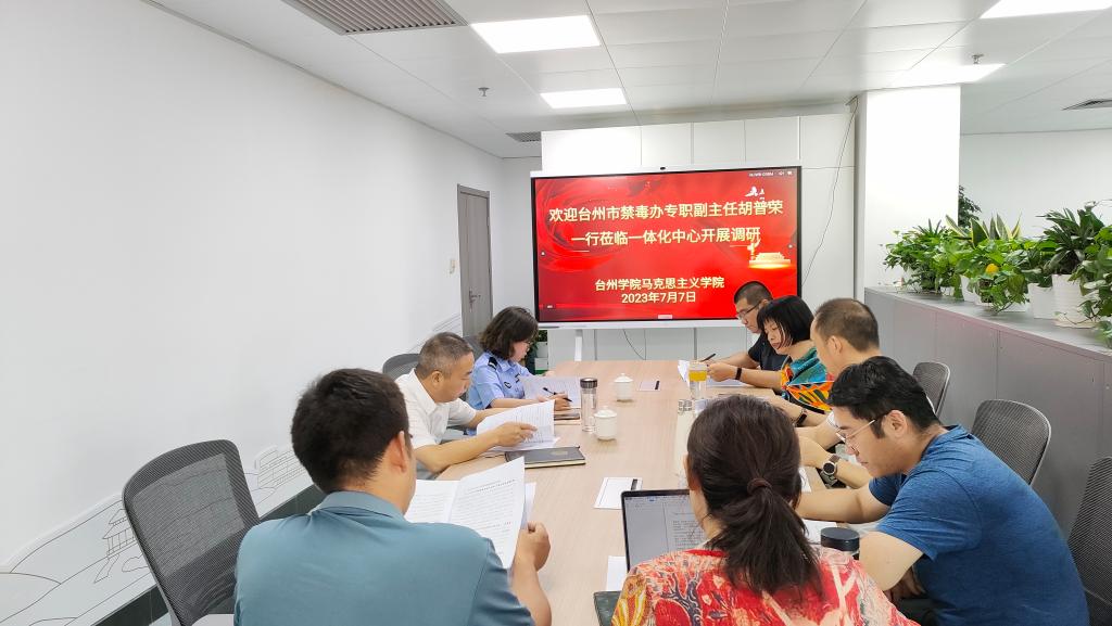 7月7日下午,台州市禁毒办专职副主任胡普荣和民警张宇斐来到台州市大中小学思政课一体化研究中心调研禁毒教育工作开展情况。中心首席专家、304永利集团经理张天华,中心副主任张礼强和禁毒教育讲师团成员参加了座谈。