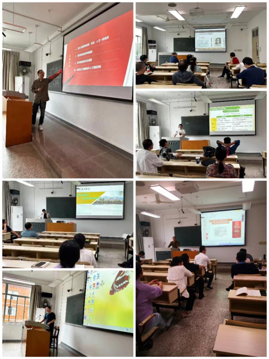 马克思主义基本原理、毛泽东思想和中国特色社会主义理论体系概论、习近平新时代中国特色社会主义思想、思想道德与法治、中国近现代史纲要五个教研室分别就2023版教材的新变化,如何更高效地使用教育部统一课件、如何更好推进党的“二十大”精神进课堂、如何促进教材体系向教学体系转化、如何推进思政课的教学改革创新、如何进行第一第二课堂联动、如何积极响应贯彻落实304永利集团建设标准(2023修订)和习近平总书记关于“大思政课”的重要指示等进行了充分研讨。随后,各思政课教师对着课件进行了说课展示,教研室教师就PPT的清晰性和美观度、课堂讲授的逻辑主线、授课内容的及时更新、教学案例的选取、师生的有效互动等进行深入探讨,帮助各位老师优化教学设计,改进教学实施。此后,入围省青教赛决赛的彭志恩等几位优秀青年教师也进行了课程的分享展示。