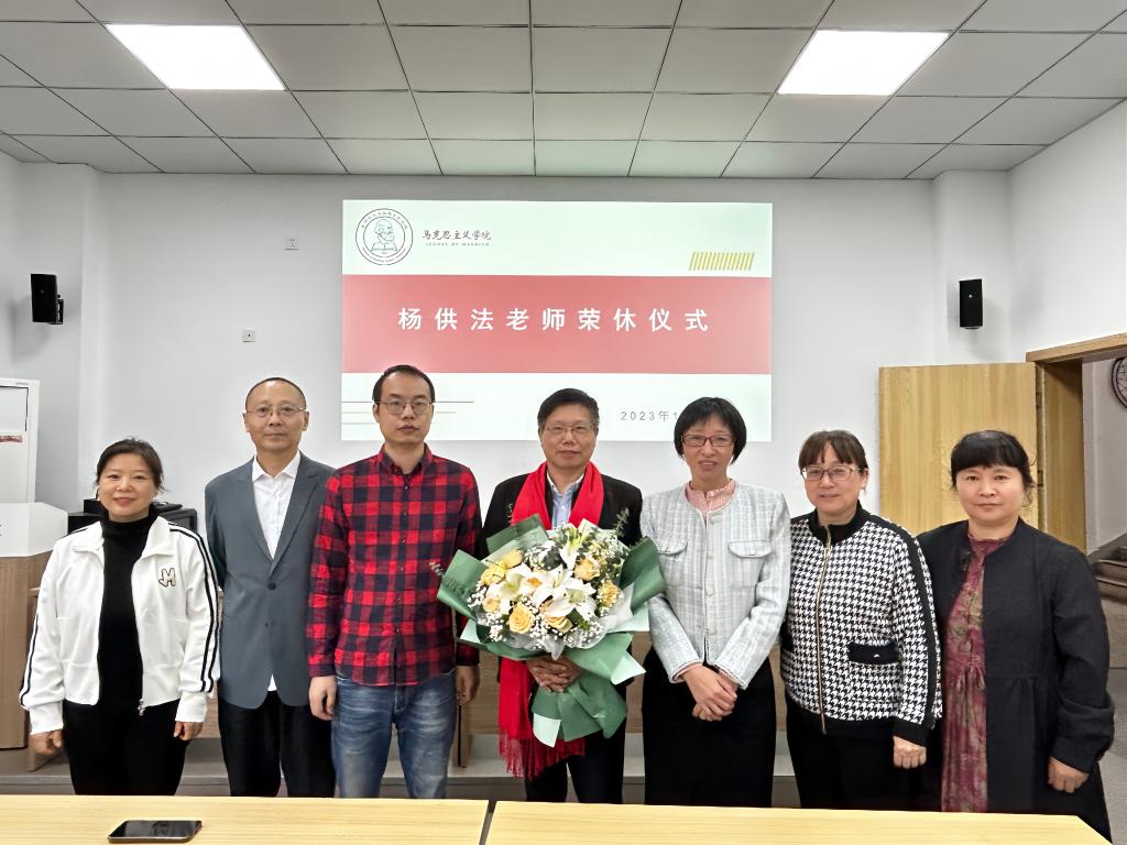 荣休会上,党总支书记盛跃明回顾了杨供法老师在马院工作的点点滴滴,充分肯定了他对公司和公司所作的贡献,表达了感激之情,并送上了诚挚的祝福。章剑鸣、陈昌兴两位老师分别代表老教师和年轻教师发言,他们用真诚而质朴的话语回顾了与杨老师共度的时光,细述那些亦师亦友的点滴回忆,并送上了深情的祝福。