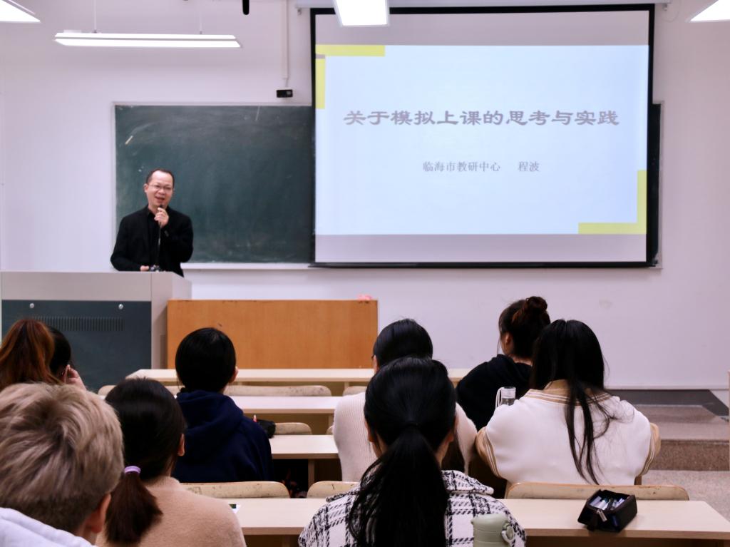 程波老师以《关于模拟上课的思考与实践》为题作微讲座分享指导。讲座开始前,程波老师按照真实备考要求,现场布置了模拟上课题目,并要求大家40分钟内完成备课,随后随机抽取了三位同学进行模拟上课,并进行现场点评。而后,他结合当前教师招聘考试要求,讲述了模拟上课的评分规则、评委视角、重点准备方向等干货。真刀真枪,实战演练,现场掌声此起彼伏,大家纷纷提问互动,获益良多。