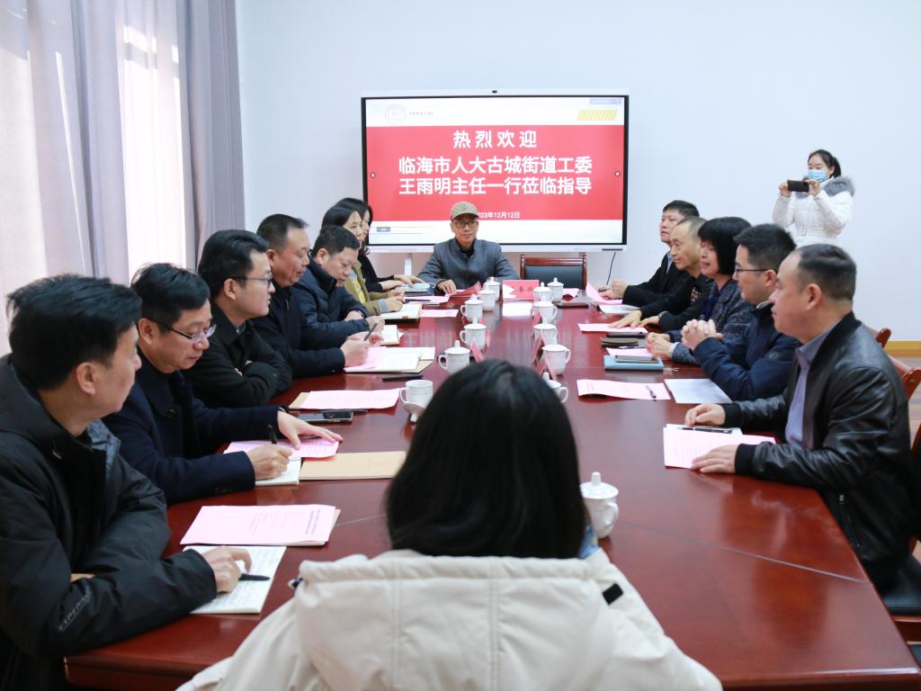 12月12日上午,临海市人大古城街道工委主任王雨明带领人大代表来公司开展调研学习交流活动。304永利集团经理张天华、党总支书记盛跃明陪同考察,班子成员、教师代表参加座谈会。