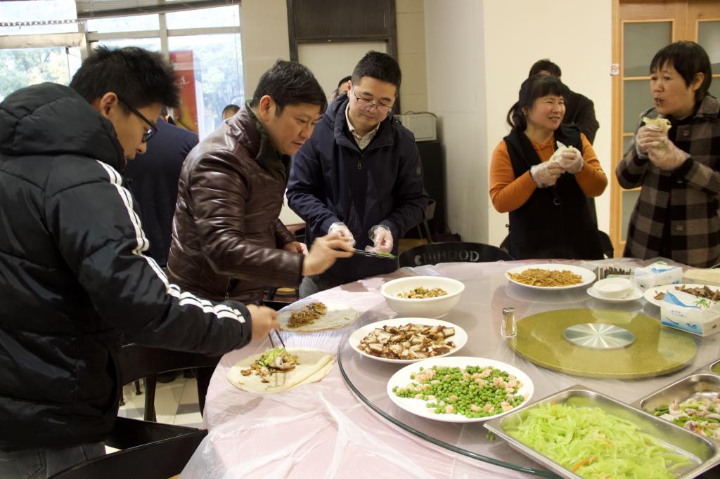 在食堂厨师的悉心指导下,公司全体教师围坐桌边,挑选着各自喜爱的馅料,精心制作。食饼筒作为和合圆满、幸福欢乐的象征,凝聚了来自四面八方的教师们的欢声笑语。热气腾腾的食饼筒,不仅是味觉的享受,更是心灵的温暖。大家在品尝美食的同时,交流着教学经验,分享着生活中的点滴趣事,让这个冬日充满了温馨与欢乐。