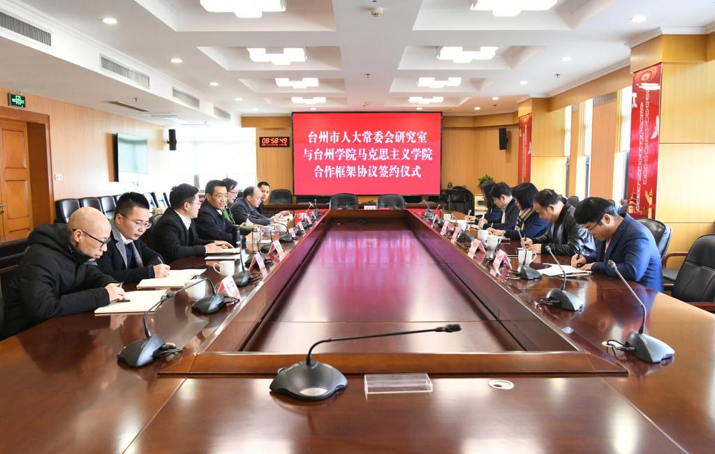 张天华经理与台州市人大常委会副秘书长、研究室主任童文兴分别代表双方签署了合作框架协议。