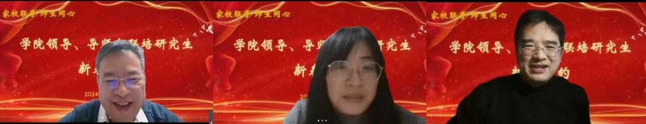 李跃华、徐培林、陈昌兴在会议中表示,能够同两校领导、联培研究生及家长坐在一起,一同承前启后,在爱与学习中互相陪伴,成为了彼此的“家人”是一件非常幸福的事情。大家对过去的一年进行总结并对新的一年加以期许十分有意义,非常开心能够听到同学们在联培过程中有很多收获,同时两所高校马院的教师们都是有情怀的思政人,期盼着大家新的一年有更多的收获,更大的进步。