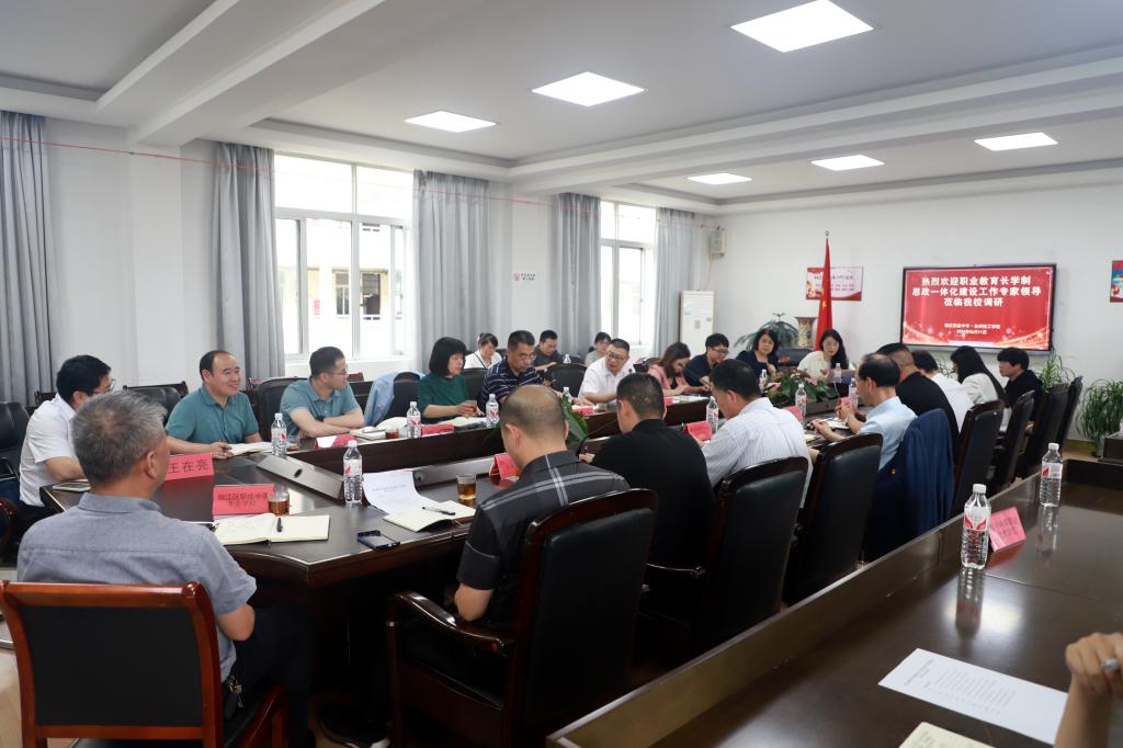 调研会前,与会专家旁听观摩了椒江区职业中等专业公司示范思政课《绿水青山就是金山银山》,并与授课教师李缘进行了深入交流,了解公司思政课建设情况的同时关切教师们在思政课教学中的困惑。