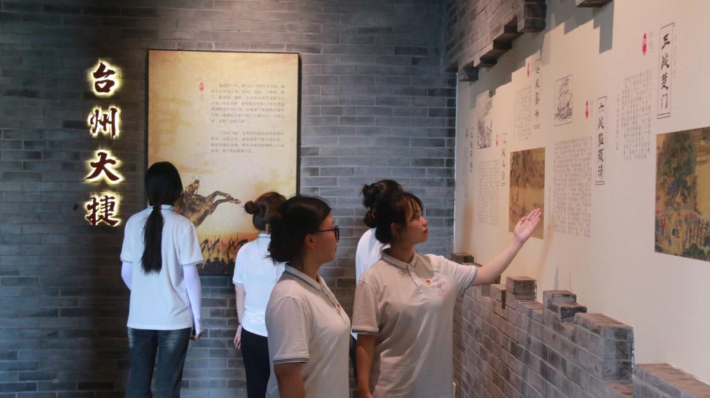 戚公祠位于临海北固山南,是浙江省廉政文化教育基地和台州市、临海市爱国主义教育基地。实践队成员们怀着崇敬的心情齐聚于此地,重温戚继光的英雄事迹。队员们认真参观了戚公祠内的陈列展览,详细了解了戚继光抗击倭寇的英勇事迹和不朽功勋。馆内以绘画碑刻、多媒体等呈现方式,仿佛将大家带回到那段波澜壮阔的历史岁月,立体地感受戚继光的光辉形象,亲身体悟戚继光将军的爱国精神和廉洁品质。