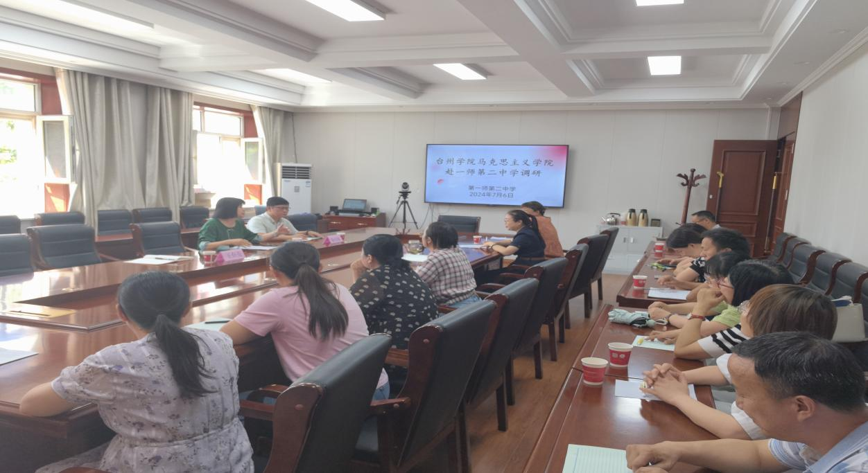 7月6日上午,张天华教授一行三人赴阿克苏地区开展大中小学思政课一体化地方创新实践实地调研活动。在拜访了浙江省援疆指挥部之后,受邀到十二年一贯制公司第一师第二中学实地调研,公司党委书记杨志敏和全体思政课教师参加了调研活动。杨志敏回顾了公司的红色光荣历史,然后小学段、初中段、高中段思政课组长先后介绍了各个学段的思政课地方创新实践活动、存在问题及建议,与会思政课教师结合自身教学实际热烈探讨了自己的观点意见。张天华教授通过调查问卷的方式与在场所有思政课老师进行了深入交流,期望双方重点在团队、课程、教材、资源等方面加强大中小学思政课一体化东西部协作。
