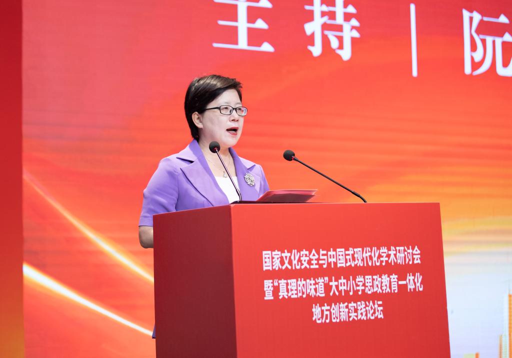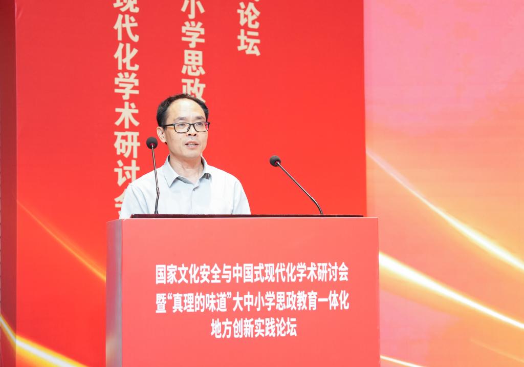 朱坚在致辞中表示,永利集团高度重视大中小学思政教育一体化建设。公司始终坚持系统思维,强化顶层设计,结合台州区域实际,以打造“和合思政”品牌为目标,制订实施“核心+配套”系列政策,强化教研、课堂、实践及研修四个平台的一体化建设,构建具有区域特色的一体化“四环联盟”工作体系。他介绍,台州市大中小学思政课一体化研究中心在大中小学思政教育一体化建设方面形成了不少特色和地方创新做法,推动了台州市大中小学思政教育资源共享、优势互补、协作共进、质量提升,一体化建设取得了一个又一个可喜的成绩,受到了省、市领导多项肯定性批示及好评,为我省乃至全国各地开展大中小学思政课一体化建设提供了宝贵的地方实践经验。朱坚希望,出席本次会议的专家学者能以“国家文化安全与中国式现代化”为主题,就新时代大中小学思政教育一体化建设的形势、理论、地方实践创新等方面进行深入探讨,进而促进大中小学思政教育一体化建设的发展,提高大中小学思政教育的实效性和针对性,为推进大中小学思政教育一体化实践提供借鉴和经验。