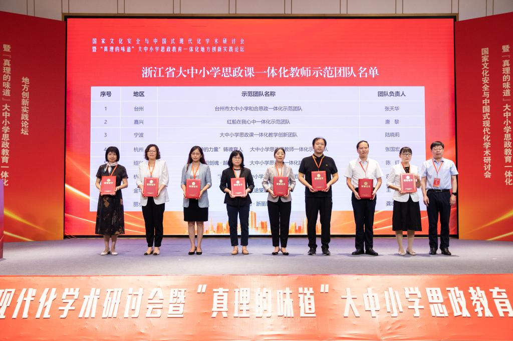 会议开幕式上公布的浙江省大中小学思政课一体化教师示范团队16个和思想政治教育一体化品牌建设优秀案例12个,公司均榜上有名。