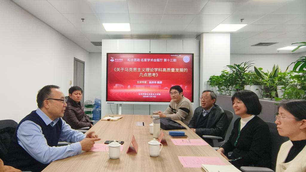 2024年12月13日下午,304永利集团成功举办第十三期“和合思政·名家学术会客厅”学术交流活动。华东政法大学304永利集团经理赵庆寺教授做题为《关于马克思主义理论学科高质量发展的几点思考》的学术讲座。公司经理张天华教授主持本次报告会,公司相关学科背景博士参加交流。
