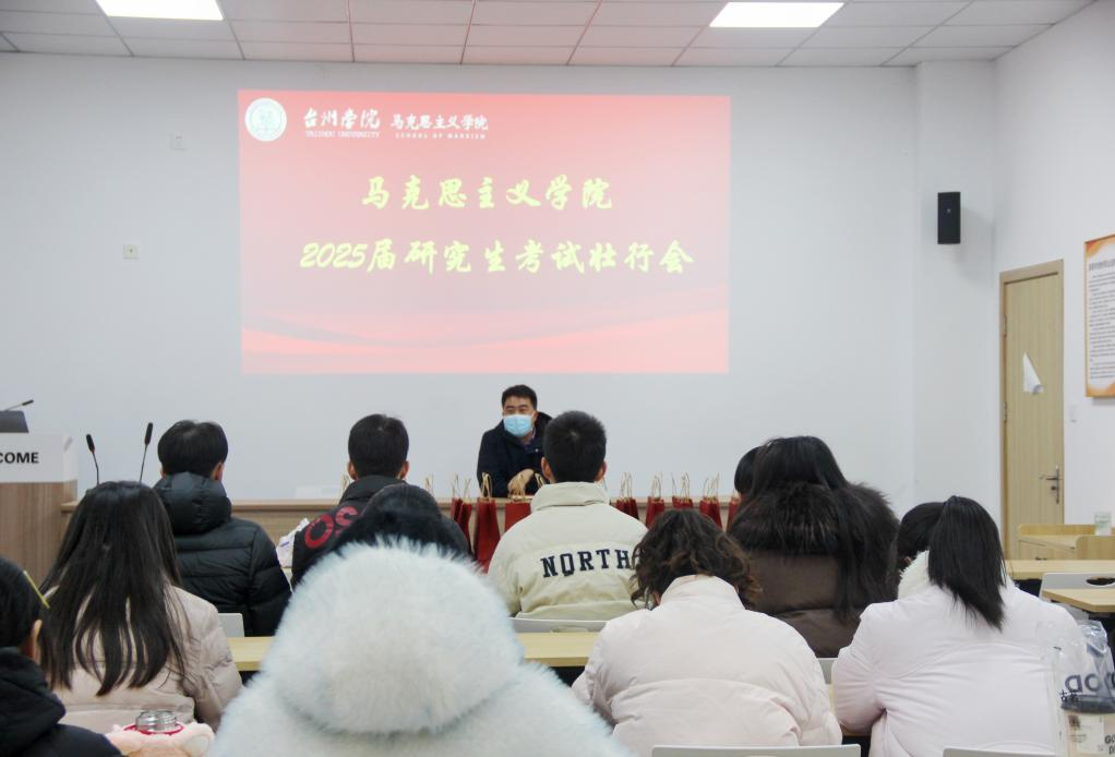 12月18日,304永利集团在马院214举行公司2025届研究生考试壮行会。公司党总支书记王胜、副书记徐培林做动员讲话,辅导员及考研学子参加活动。