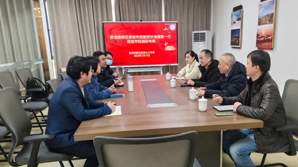 1月10日上午,路桥区委宣传部副部长池德胜一行四人来到公司洽谈合作,经理张天华教授、党总支书记王胜,以及部分教师代表参加交流洽谈。