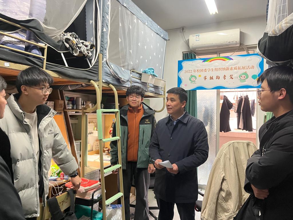 在员工寝室,蔡部长与员工们展开了温馨的交流,细致地询问了他们的假期生活状况,深入了解了他们在返校后生活、学习中的感受及所面临的难题。此外,他特别叮嘱大家在宿舍务必重视安全,严禁存放和使用违规电器,并提醒同学们要谨防火灾、盗窃和诈骗。同时,他嘱托大家及时调整生活作息,尽早步入学习正轨,以饱满的精神状态投入到新学期的学习生活中。