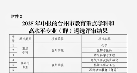 2025年申报台州市重点学科和高水平专业(群)遴选评审结果