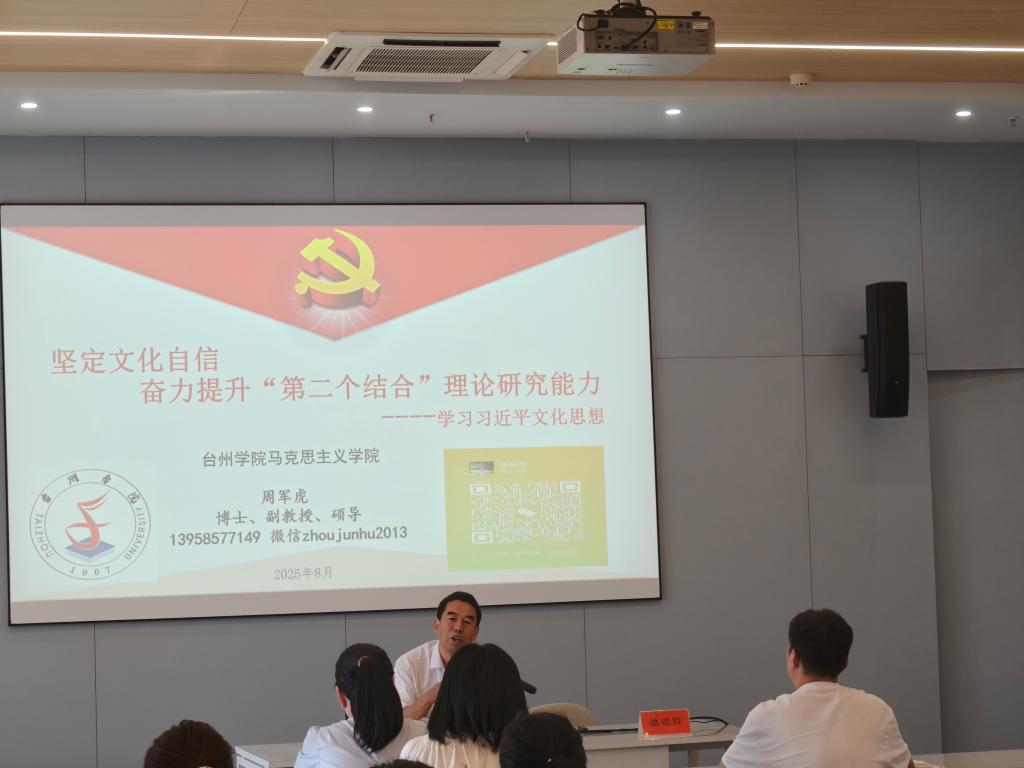 在调研期间,周军虎博士在路桥区图书馆面向社会大众进行了以“坚定文化自信 奋力提升‘第二个结合理论研究能力’——学习习近平文化思想”为主题的公益讲座,现场聆听群众纷纷表示受益匪浅。