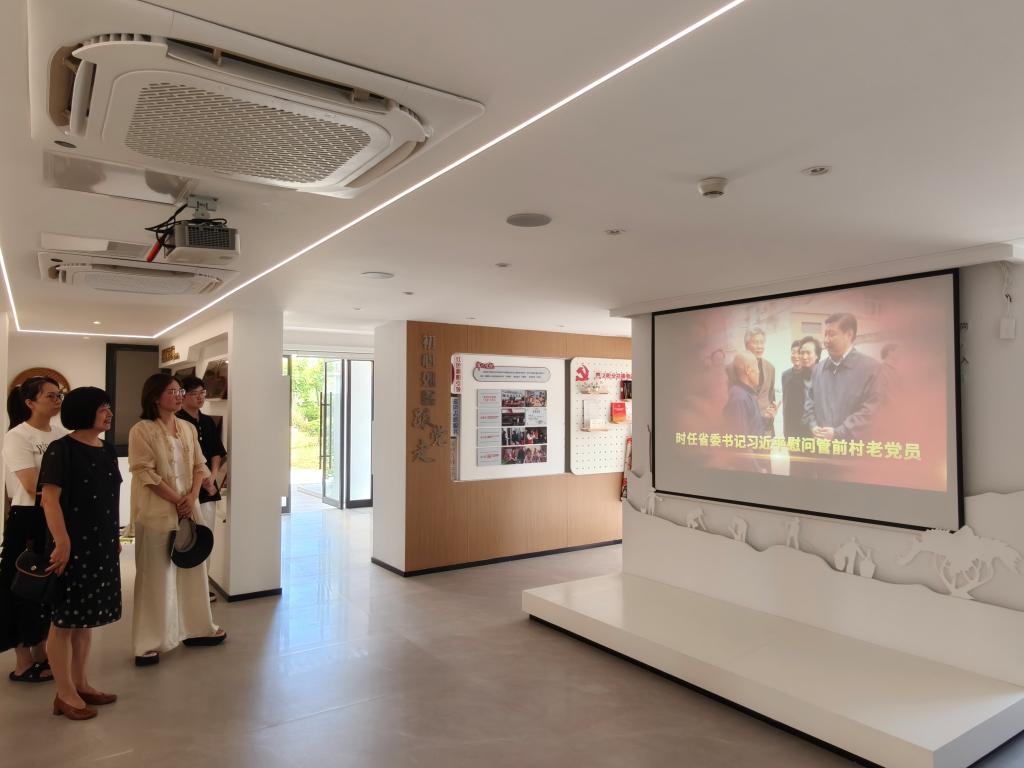 在隆湖社区,张天华教授一行以“习近平新时代中国特色社会主义思想寻迹溯源”为首要方向,以2002年时任浙江省委书记习近平同志在隆湖社区管前经济合作社的重要指示“全面建成小康社会,不能让一个困难群众掉队”为主线,结合隆湖社区的发展变迁,从“艰苦创业、勇于担当”的扁担精神、兴隆共富工坊、一老一小朝夕相伴双龄共养、湖光三色党建工作法、“隆腾湖悦”党建品牌建设等多个方面切实感受思想伟力如何转化为推动社区发展的生动实践。
