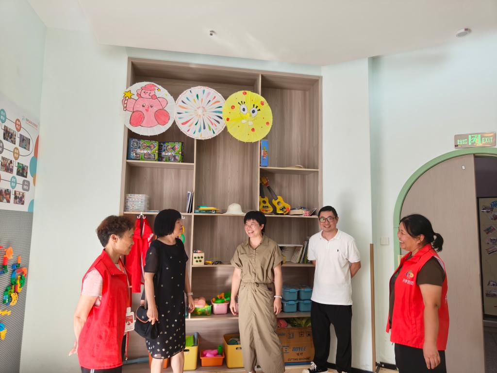 在洋洪社区,张天华教授一行重点了解受到中央电视台报道的“共享奶奶”志愿服务托管服务工作,通过社区、幼儿园、家长、共享奶奶、社工机构等多主体协作,不仅提供阅读陪伴、游戏互动等常规托管服务,还设计由具备相关特长的奶奶主导教学的手工、红色故事、音乐启蒙、传统文化体验等“银龄传承小课堂”,推动“奉献-回报-反哺”的社区爱心循环,构建“老幼共融、邻里互助”的社区文化,形成可复制、可持续的“党建+银龄志愿服务”社区治理模式。