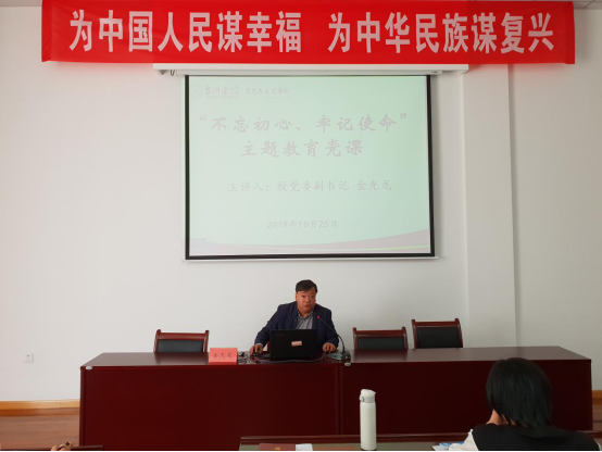 为推动主题教育走深走实,10月25日下午,马公司邀请公司党委副书记金先龙为全体教师作“不忘初心、牢记使命”专题党课。公司党总支书记张礼强主持党课。