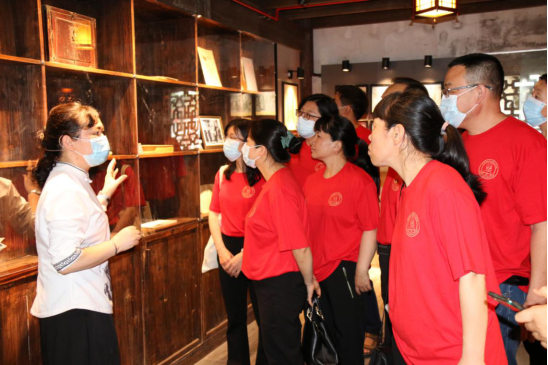穿过青色小巷,党员们来到了郭凤韶纪念馆,在讲解员的讲述下,老师们仿佛回到了那个动荡纷争的革命年代,深刻感受到郭凤韶“且向百花头上开”的人生注脚。她是南京雨花台烈士群雕中的一员,是民主革命时期台州牺牲的第一个女共产党员,她在雨花台英勇就义时年仅19岁,她在狱中受尽酷刑,被打得遍体鳞伤、血肉模糊时依然守口如瓶。每次从昏迷中醒来,总是怒斥敌人:“你们想用逮捕、屠杀的办法消灭共产党,是不可能的!”她把革命的信仰一直坚持到生命的终结。走过一个个房间,我们看到了她坚贞不屈的气节;顺着一级级的台阶,我们看到了一个十九岁的,短暂却灿烂燃烧的生命。在参观结束后,党员老师们在郭凤韶烈士的雕像前重温了入党誓词。