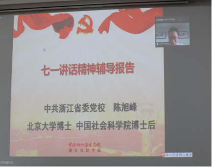 专题辅导报告以线上方式开展,陈旭峰结合习近平总书记“七一”重要讲话,用学术讲党史,透彻地论述了“遵义会议历史背景与过程”,“遵义会议的伟大历史转折”和“遵义会议历史与时代价值”,史论结合、寓意深远。遵义会议精神是以伟大建党精神为源头的中国共产党人精神谱系的重要组成部分,陈老师的报告对我们马院在做好大陈岛垦荒精神这篇文章方面极具指导意义。