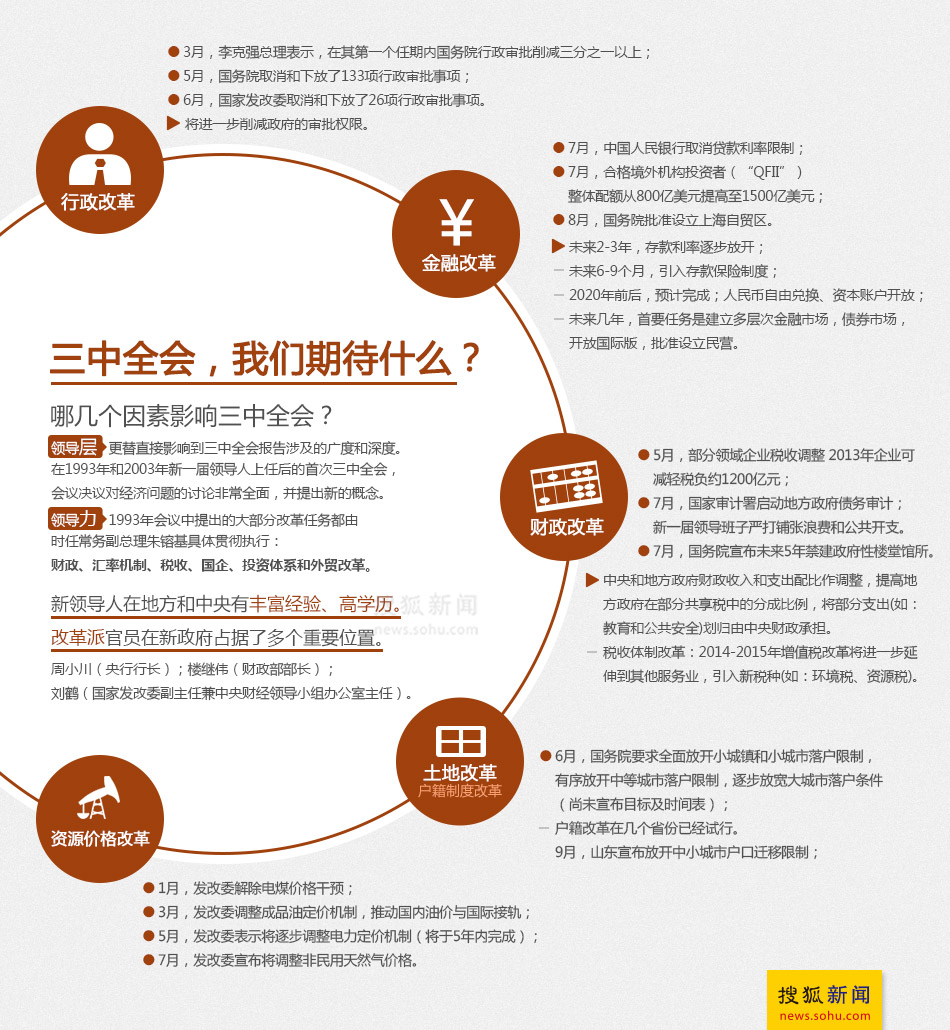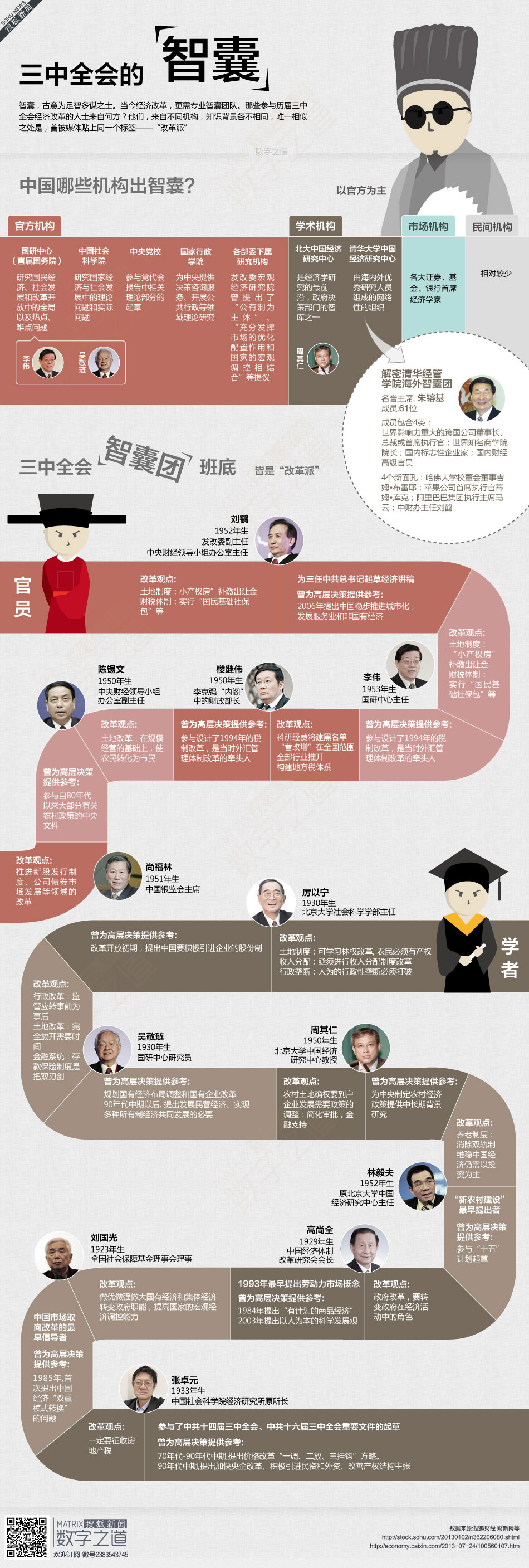 作为中国经济体制改革研究会副会长樊纲曾多次撰文或谈及自己对历次三中全会的看法。“每一个三中全会,至少最近的20多年来,都有一些新的东西,都是在往前走。这是我们的判断。”|详细|