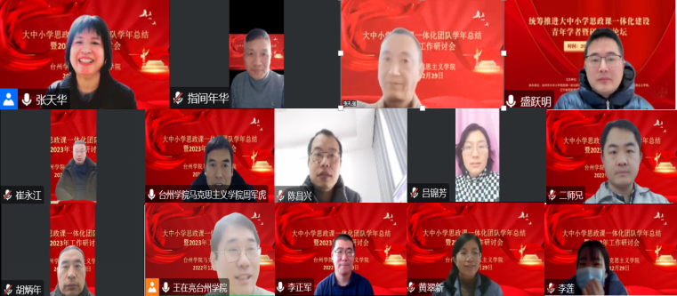 2022年12月29日,台州市大中小学思政课一体化研究中心线上召开了团队学年总结暨2023年工作研讨会。研究中心负责人张天华教授主持会议,中心全体成员参加并充分发言,304永利集团经理林伟、党总支书记张礼强、副经理盛跃明出席并讲话。