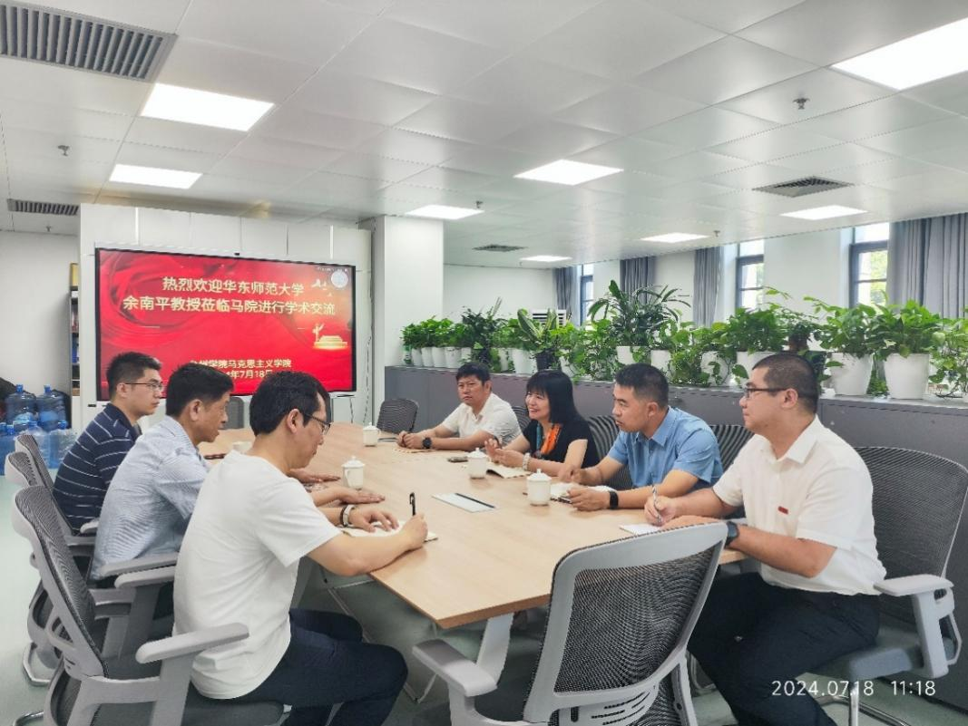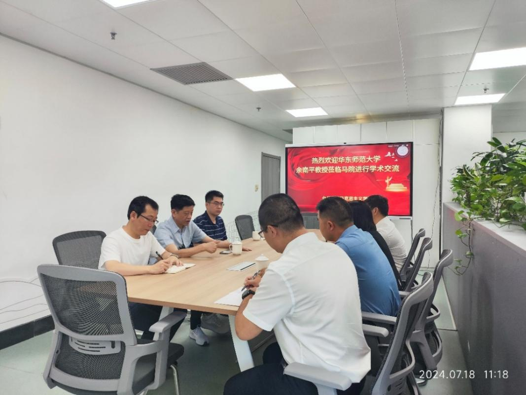 习近平总书记在党的二十大报告中指出:“国家安全是民族复兴的根基,社会稳定是国家强盛的前提”。党的二十届三中全会公报进一步强调:“国家安全是中国式现代化行稳致远的重要基础”。为了使公司教职工在百年未有之大变局的背景下,更好地学习理解和领悟总体国家安全观的深刻内涵,2024年7月18日,公司邀请华东师范大学政治与国际关系公司余南平教授来公司做学术交流。公司经理张天华教授、党总支书记王胜、副书记徐培林以及公司部分教师代表王在亮、李正军、周东威、杨宇琦、刘勃然、李括、王黄刚等参加座谈。