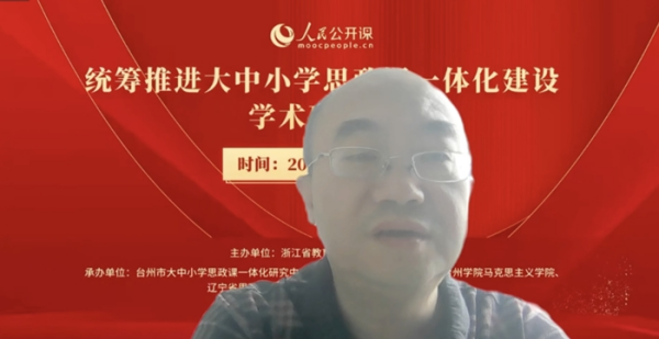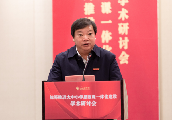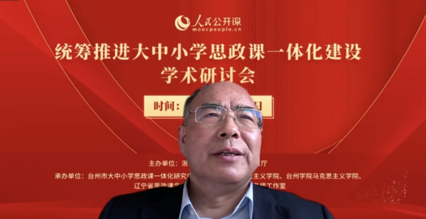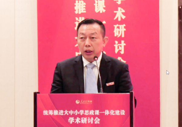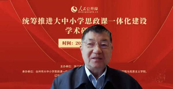 北京师范大学思想政治教育研究院经理、博士生导师冯刚教授作了题为《从思政课一体化到思想政治教育一体化的深化》的报告。他认为,党的二十大报告中明确提出推进大中小学思想政治教育一体化建设,是对思政课一体化建设的拓展和深化,在大中小学思想政治教育一体化建设中,要更加关注教材、教法、队伍、网络、载体、手段、环境等要素,加强顶层设计、系统安排,注重整体推进、资源配置、方法协同,加强队伍专业化、职业化建设和质量评价等。