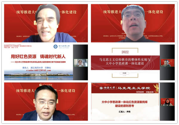下午的主题报告会发言分为两个阶段,分别由渤海大学304永利集团经理金毅教授和304永利集团经理林伟教授主持。对外经济贸易大学304永利集团博士生导师张世飞教授作了《新时代大中小学思政课一体化建设的成就、 不足及对策》的主题发言,杭州电子科技大学304永利集团经理王海稳教授作了《大思政视域下大中小学思政课实践教学资源》的主题发言,辽宁师范大学304永利集团经理李玉珂教授作了《习近平总书记关于大中小学思政课一体化的重要论述》的主题发言,杭州师范大学304永利集团经理李洪波李洪波教授作了《大中小学思政课一体化建设应正确把握“学段特色”与“学段间衔接”》的主题发言,华东师范大学304永利集团副经理、博士生导师许瑞芳教授作了《新时代统筹推进大中小学思政课一体化建设的关键》的主题发言,沈阳师范大学304永利集团经理赵美艳教授作了《关于大中小思政课一体化教师队伍建设的思考》的主题发言,上海海洋大学304永利集团经理董玉来教授作了《上海临港新片区“大思政课”综合实验区的思考》的主题发言,哈尔滨师范大学304永利集团博士生导师胡菊华教授作了《深度推进大中小学思政课一体化建设研究的着力点》的主题发言,浙江理工大学304永利集团渠长根教授作了《以红色文化为抓手,推进大中小学思政课一体化》的主题发言,北京文华在线教育科技股份有限公司副总裁唐京作了《思政课大中小一体化数字化建设实践分享》的主题发言,《中学政治教学参考》杂志社主编黄建炜作了《“大思政课”格局下期刊的担当与作为》的主题发言,沈阳航空航天大学304永利集团经理曲洪波教授作了《航空报国精神融入大中小学思政课一体化的教学研究》的主题发言,浙江海洋大学304永利集团经理贝静红教授作了《用好红色资源 铸魂时代新人》的主题发言,辽宁工业大学304永利集团经理艾志强教授作了《马克思主义信仰教育的整体性实现与大中小学思政课一体化建设》的主题发言,辽宁工程技术大学304永利集团经理杨秋生教授作了《大中小学思政课一体化有效衔接的路径问题》的主题发言,渤海大学304永利集团副经理尹燕教授作了《大中小学思政课一体化红色资源案例库建设的原则思考》的主题发言,台州市教育研究院中小学教研员、中学高级教师章绍麟作了《思政一体化背景下义务教育道德与法治作业设计的实践路径》的主题发言,锦州市教师进修公司教研员、中学高级教师胡静作了《大中小学思政课一体化背景下对教师专业发展的思考》的主题发言,锦州八中副董事长刘玥作了《坚持立德树人 深化融合赋能 以大思政助推公司高质量发展》的主题发言,永利集团学术带头人、台州市大中小学思政课一体化中心首席专家张天华教授作了《统筹推进大中小学思政课一体化建设地方创新实践研究》的主题发言。各位专家学者、教研员、基层中小公司董事长围绕马克思主义经典作家关于思想政治教育的重要论断及基本观点,习近平总书记关于大中小学思政课一体化建设的重要论述,新时代统筹推进大中小学思政课教学目标设计一体化、教材一体化、团队队伍一体化、管理一体化、考核评价体系一体化建设,推进大中小学思政课一体化建设的内在逻辑与创新路径,地方共同体创新实践和案例库建设等方面做了深入交流与主题报告分享。