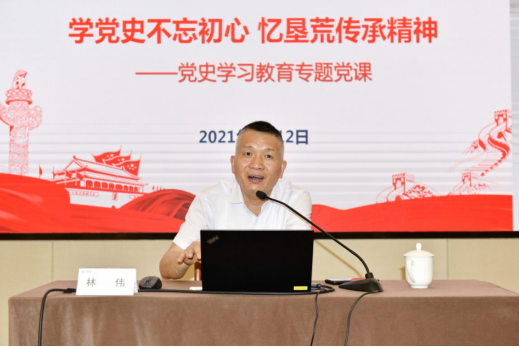下午,林伟为分公司党员干部作“学党史不忘初心 忆垦荒传承精神”辅导讲座,结合党史学习教育,阐释大陈岛垦荒精神的历史背景、深刻内涵,以及升格为台州城市精神形势下,对台州大湾区建设及移动公司培育新动能、助力市委市政府数字化改革的重要指导意义。